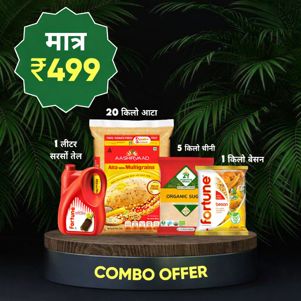 Blinkit Offer today online: Buy 20kg ashirwad atta+1 kg Besan + 5 kg sugar + 5 kg mustard oil