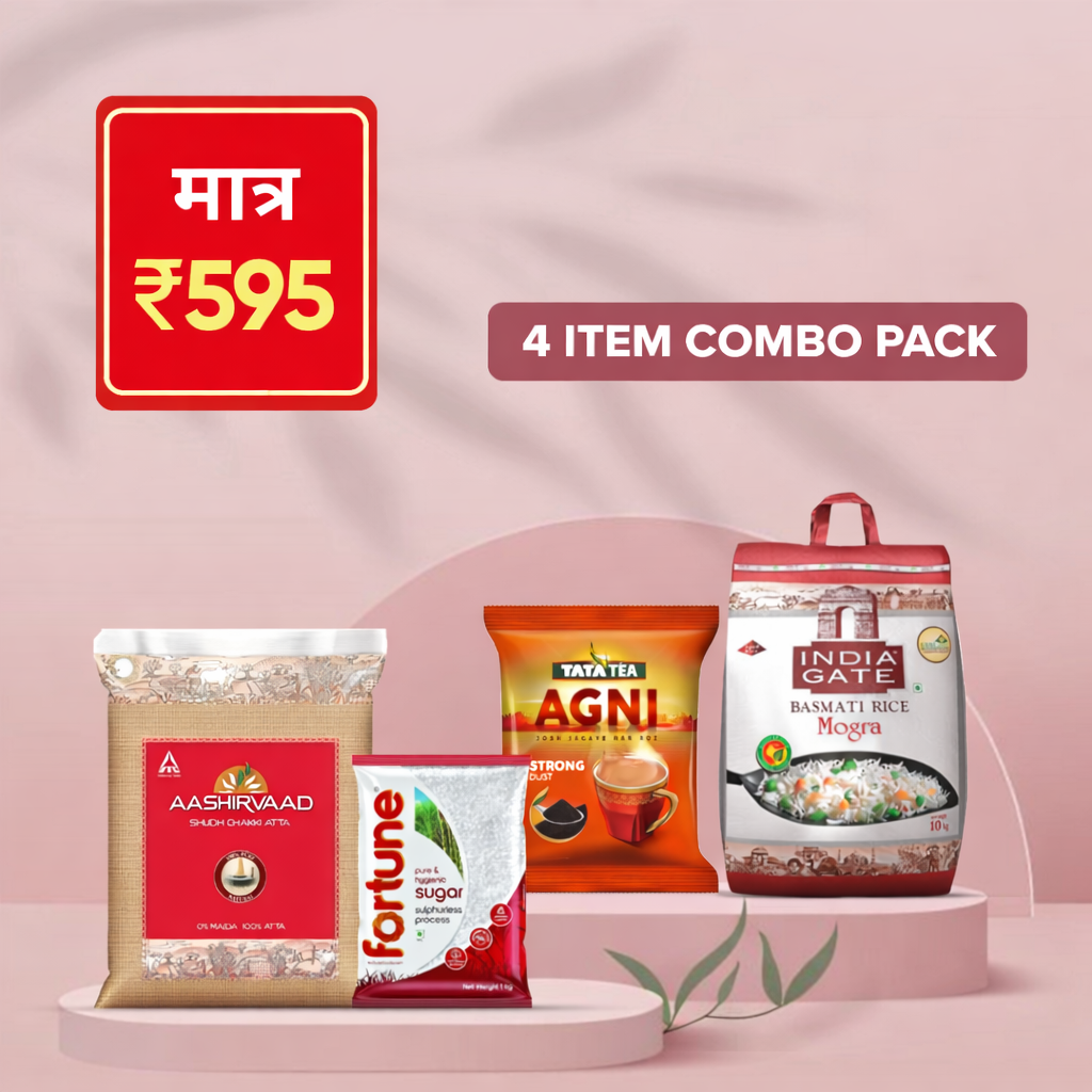 4 combo pack' india basmati 10kg 'tata agni 500g ashirwaad atta 10kg fortune sugar 5kg