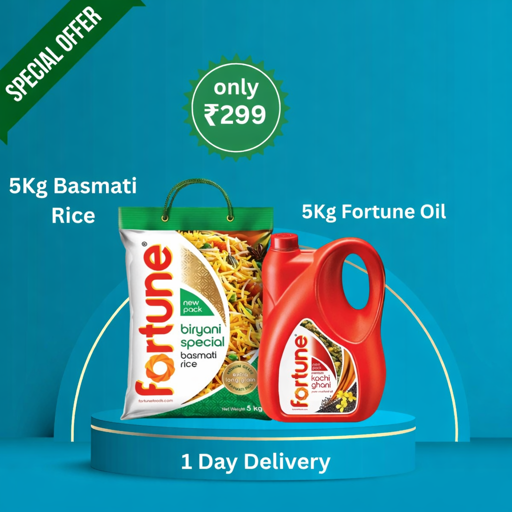 Blinkit Offer Today online: Get Basmati Rice 5kg+ Fortune Oil 5L